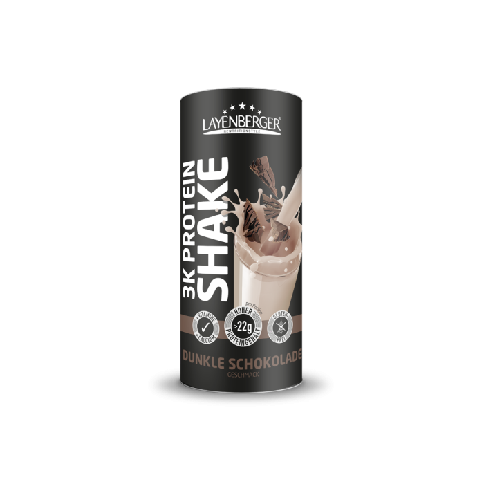 The Layenberger 3K Protein Shake Dark Chocolate is ideally suited for a conscious, protein-rich and healthy diet. Due to the three protein sources soy, whey and casein, this shake covers a wide range of amino acids - including all Essential Amino Acids (EAAs). The three-component protein - 74% protein in the drinking powder - also ensures a high biological value. And the Chemical Score is above 140!